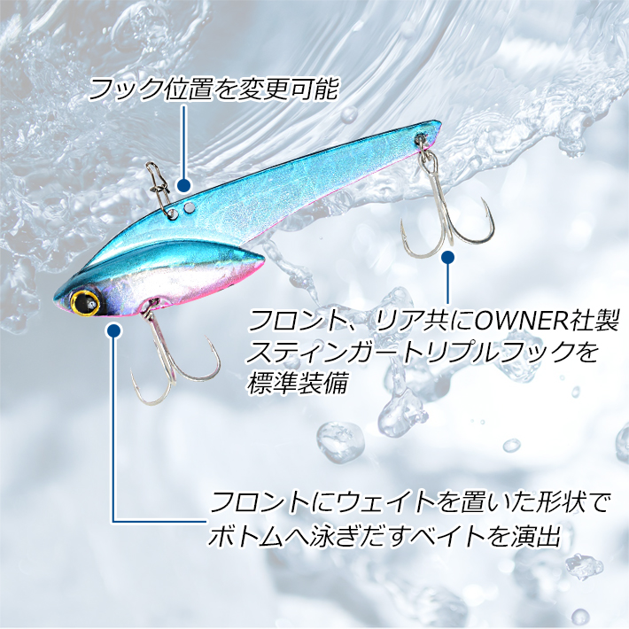 - リトリーブ開始から水を掴み泳ぎ出し抜群!足元まで姿勢を崩さずリトリーブができる新設計「鉄板バイブレーション!」
